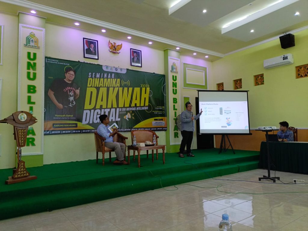 Blitar, 11 Juni 2025 – Kolaborasi Prodi Ilmu Komputer dan Komunikasi Penyiaran Islam (KPI) Universitas Nahdlatul Ulama (UNU) Blitar sukses menyelenggarakan seminar kolaboratif bertajuk “Dinamika Dakwah Digital di Era Artificial Intelligence”. Acara yang berlangsung meriah ini diikuti oleh perwakilan 17 program studi di UNU Blitar, hal ini menunjukkan antusiasme yang tinggi terhadap topik yang relevan dengan perkembangan zaman. Kegiatan ini merupakan sebuah sinergi yang bertujuan untuk memperkaya wawasan mahasiswa mengenai integrasi teknologi digital, khususnya kecerdasan buatan, dalam ranah dakwah. Kolaborasi ini diharapkan dapat mencetak lulusan yang tidak hanya menguasai ilmu keagamaan tetapi juga melek teknologi.